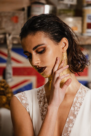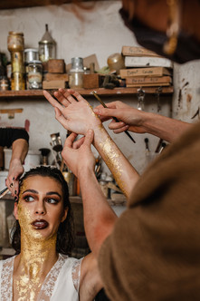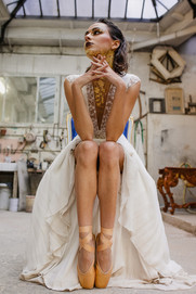 Au travers des photos du backstage (il y en a beaucoup) vous verrez cette évolution. Il nous a fallu beaucoup de feuilles d'or et de patience pour atteindre ce rendu : presque 5h de préparation, pour 1h de prise de vue. Bien sûr, je n'ai pas pu m'empêcher d'y ajouter une belle robe de mariée et des chaussons de danse... J'aimerais vous décrire tellement de choses sur ce moment mais ce serai trop long, et je souhaite que les photos à suivre suffiront à vous inspirer.